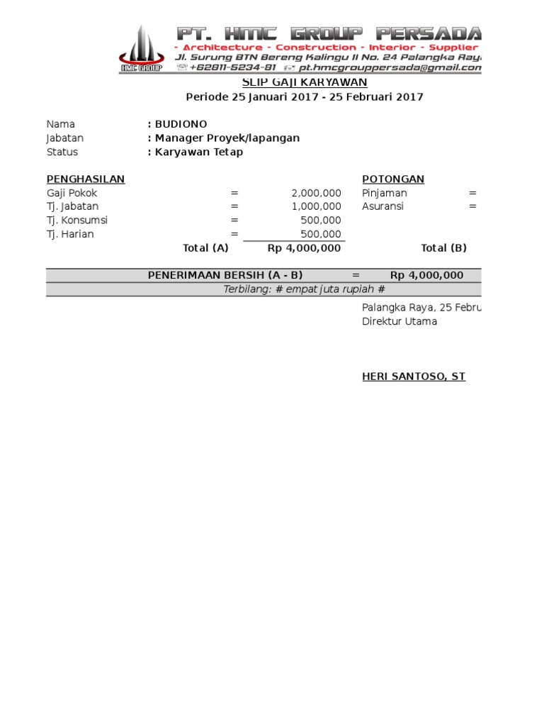 Format slip gaji direkturexcel a salary slip is a receipt prepared by the accountant instead of an employer to an employee at the end of every month.